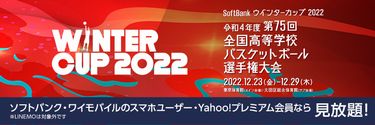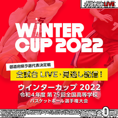 | 12月15日 | ![]() SoftBank ウインターカップ 2022 第75回 全国高等学校バスケットボール選手権大会 【全試合ライブ配信について】 ■期 間:12月23日(金)~12月29日(木) ■配信先:バスケットLIVE ■女子1回戦 大分(大分) vs 倉敷翠松(岡山) 配信開始時間12.23 15:35~ ■男子1回戦 関西(岡山) vs 鹿児島工(鹿児島) 配信開始時間12.23 17:15~ ※バスケットLIVEには登録、ログイン等の視聴条件があります。 |